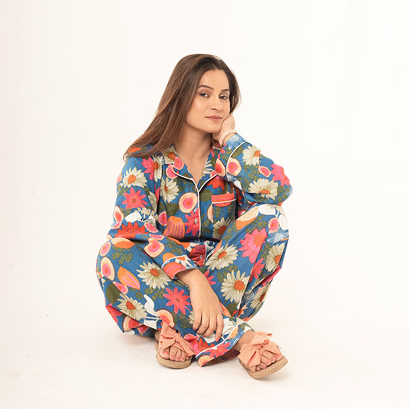Bring effortless elegance to your evenings with our Floral Stripes Cotton Pyjama Set, featuring a beautiful fusion of soft stripes and delicate floral motifs. Graceful, stylish, and soothing — this set adds the perfect blend of charm and comfort to your nighttime routine.