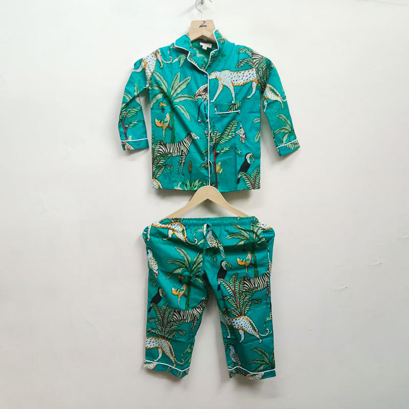 Add a playful burst of nature to your nights with our Jungle Adventure Print Cotton Pyjama Set, featuring vibrant jungle elements like leaves, animals, and tropical motifs. Fun, energetic, and full of character — this set brings a lively charm to your sleepwear while offering all-night comfort.