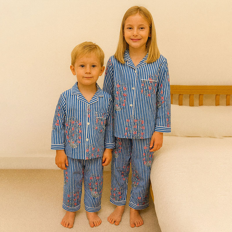 Brighten up your child’s bedtime with our Kids Striped Floral Print Pyjama Set, featuring a sweet blend of playful stripes and delicate floral motifs. Soft, cheerful, and oh-so-adorable — this set brings a touch of charm to every night and keeps kids comfy from sleep to play.