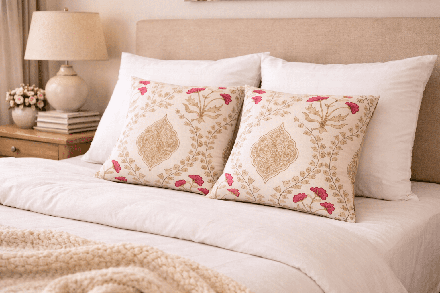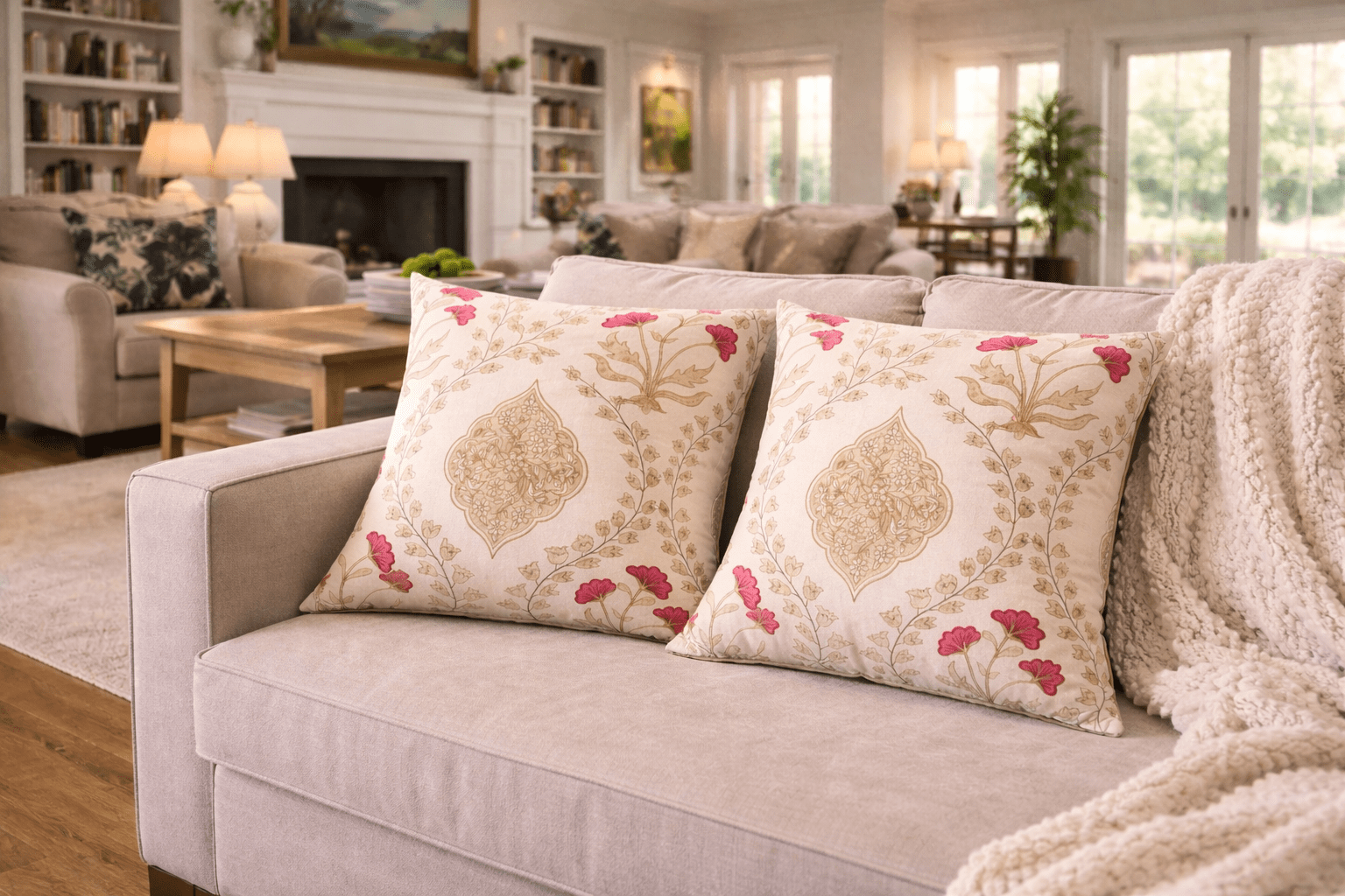 - Front: Soft cotton with Mughal-inspired floral and vine print