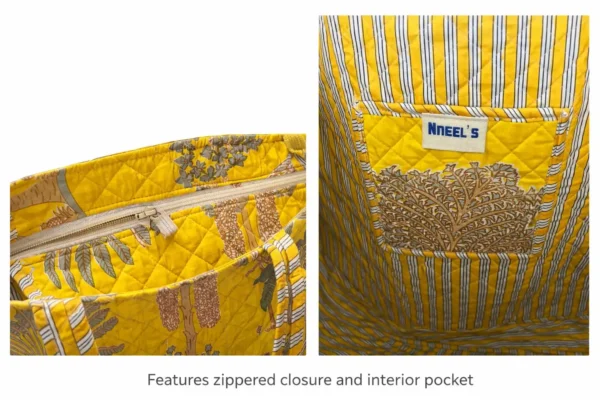 Discover Nneel’s collection of quilted tote bags designed to support your daily routine with ease and elegance. Thoughtfully crafted using premium fabrics and signature prints, each piece brings together functionality and refined style. Spacious yet easy to carry, these totes are ideal for carrying laptops, books, workout wear, and everyday must-haves. The quilted construction provides durability with a soft, structured finish, while secure zip closures and smart interior pockets help keep belongings organized. Designed for versatility and long-term use, these totes transition effortlessly from work to travel to everyday errands.
